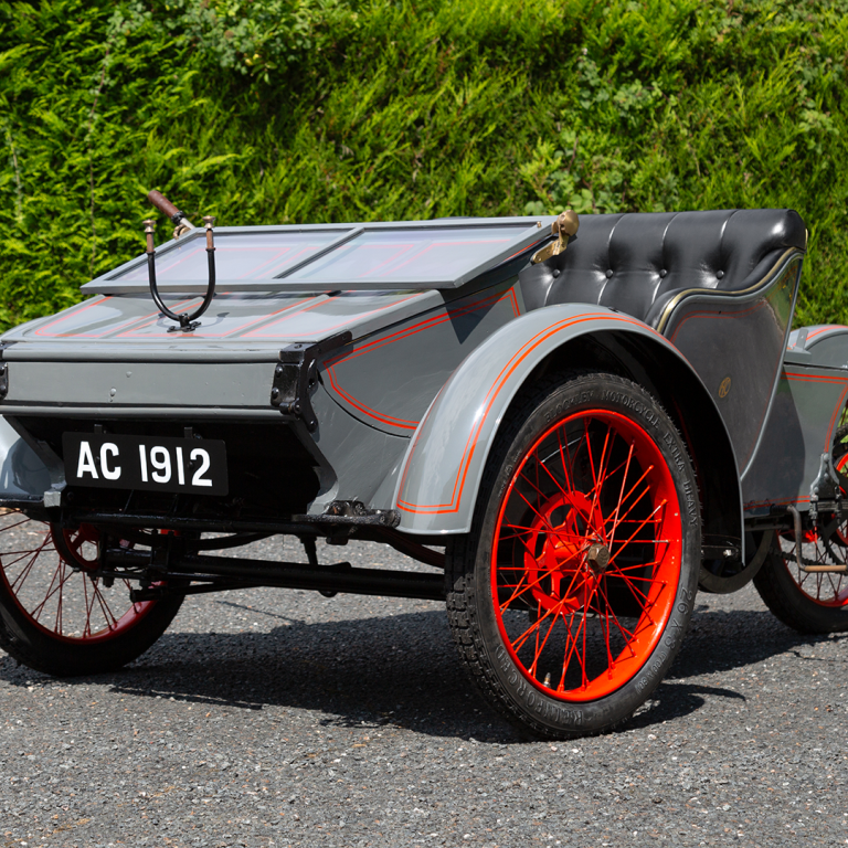The first AC (Auto Carriers LTD) sociable was a 20hp tricycle developed by the Weller brothers in 1903. The timber-framed device was powered by a single-cylinder, 636cc, air-cooled engine mounted beneath the driver’s seat and steered by a tiller.